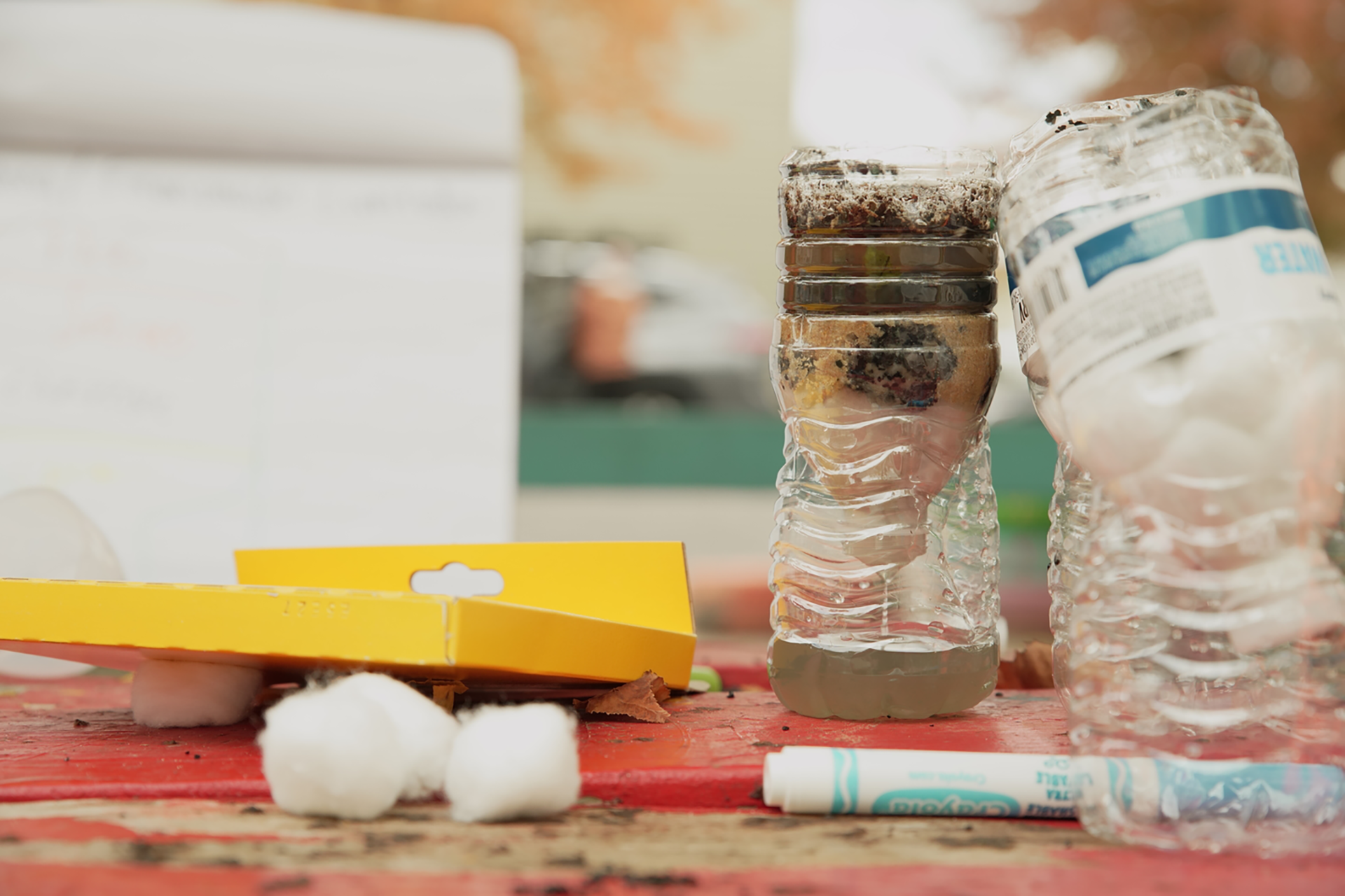 For the exercise, some of the older children were given clean bottled water and tasked with adding dirt to the bottles.