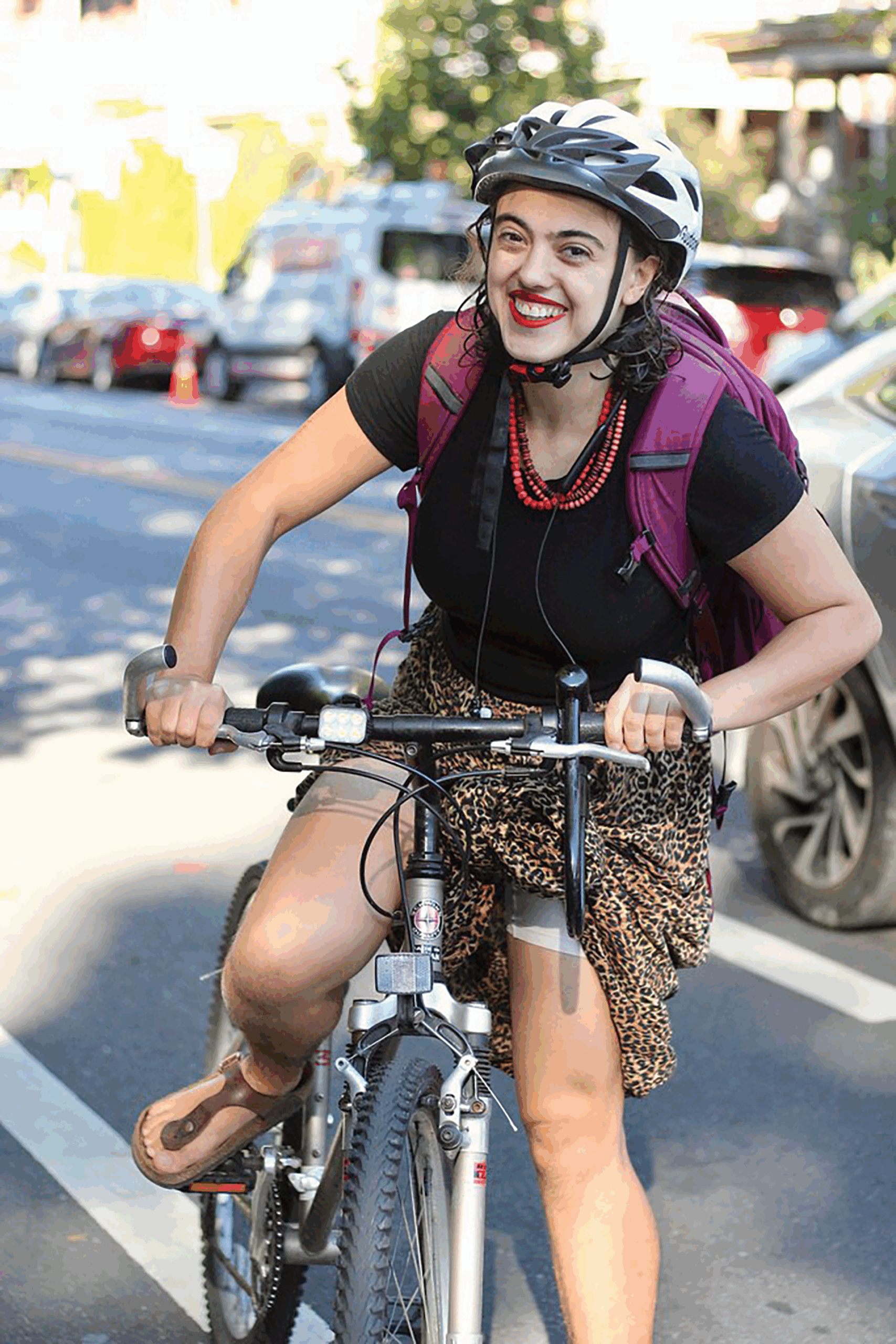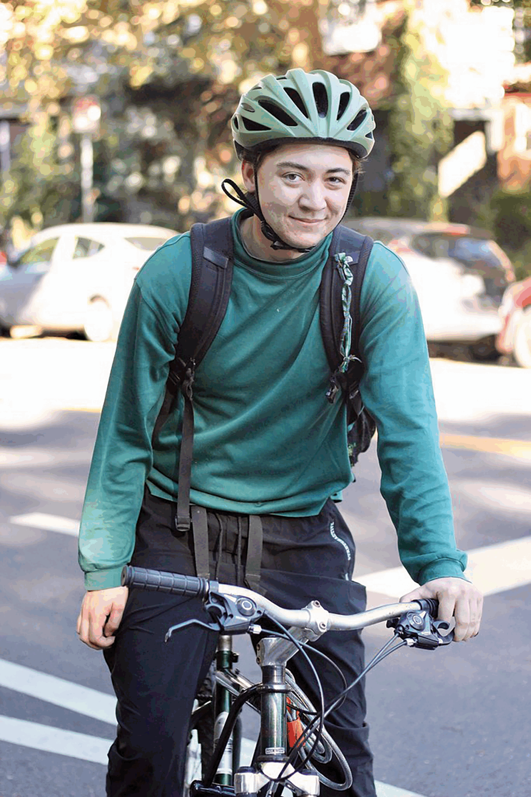 “Biking is often the fastest way to get places. I don’t like driving, and I don’t own a car. I usually try to stick to roads with bike lanes, which has been pretty easy in West Philly. I like the protected bike lanes on Walnut and Chestnut.”