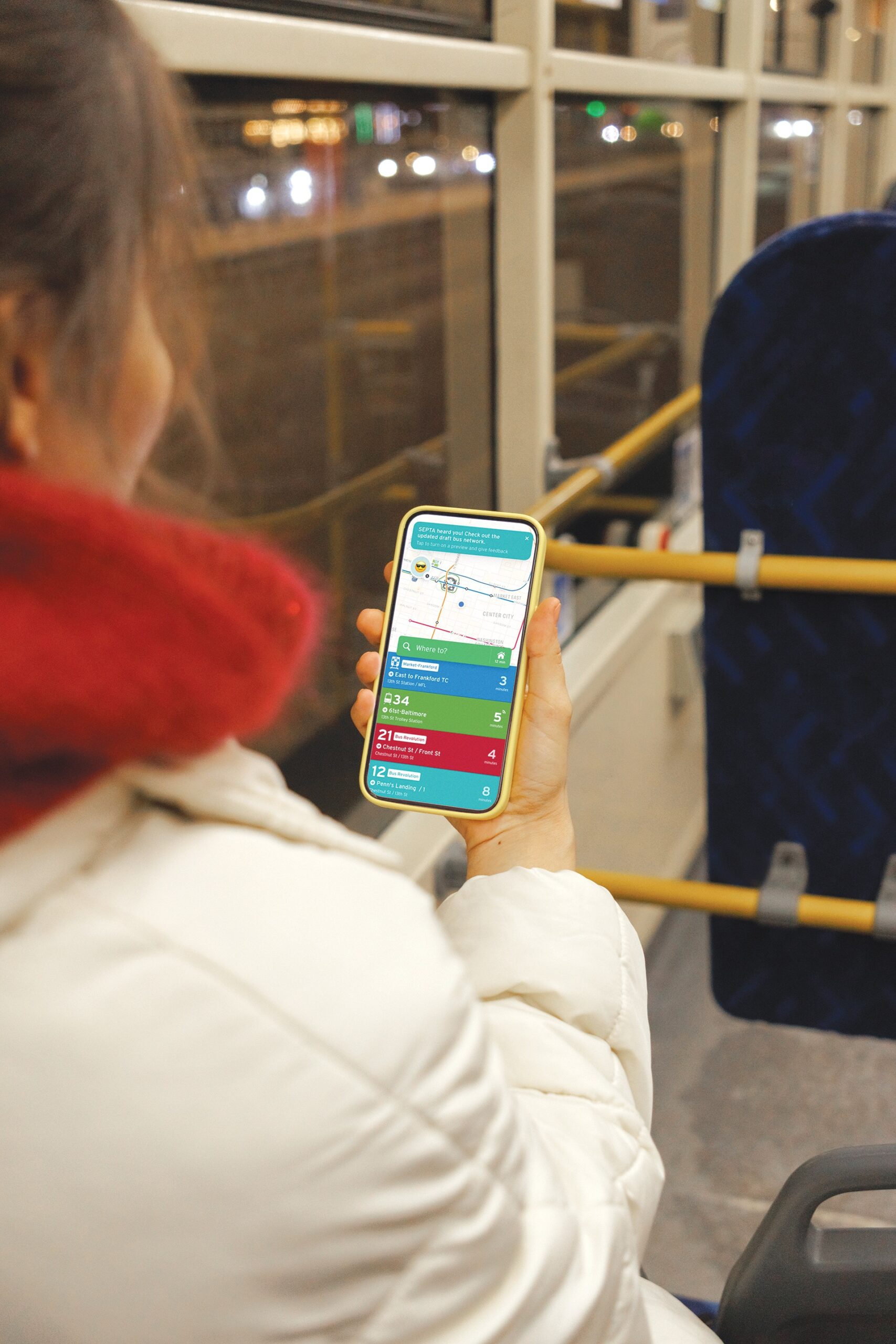 SEPTA provides Transit with open data, including schedules and real-time tracking, Monroe says. The same information is shared with other GPS applications, allowing users to plan their trips and see live delays or detours when available. It also works with Transit to ensure the app’s displays match the wayfinding signage and route information passengers encounter during their trip, such as updates reflecting SEPTA’s 2025 Metro rebrand, Monroe says.