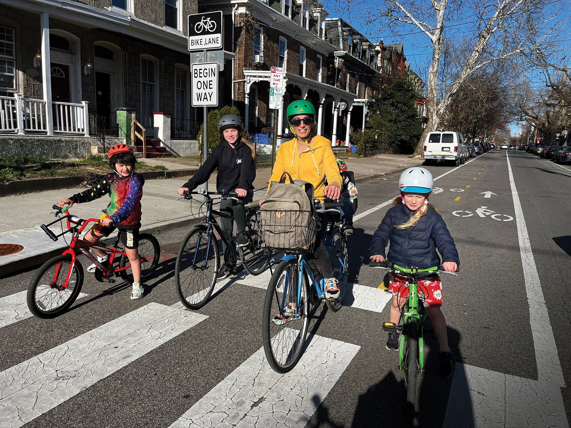 For Diana Steif, a West Philadelphia parent and former operations director at the Bicycle Coalition of Greater Philadelphia, cycling independence is a carefully monitored project. Steif co-parents a 16-year-old, two 12-year-olds and a 5-year-old, all of whom ride, and she is emphatic about safety. “I feel like I must demonstrate … I’ll come to a complete stop at stop signs or red lights and overemphasize my turning signals so that my children see it, but also so that car drivers see it.”