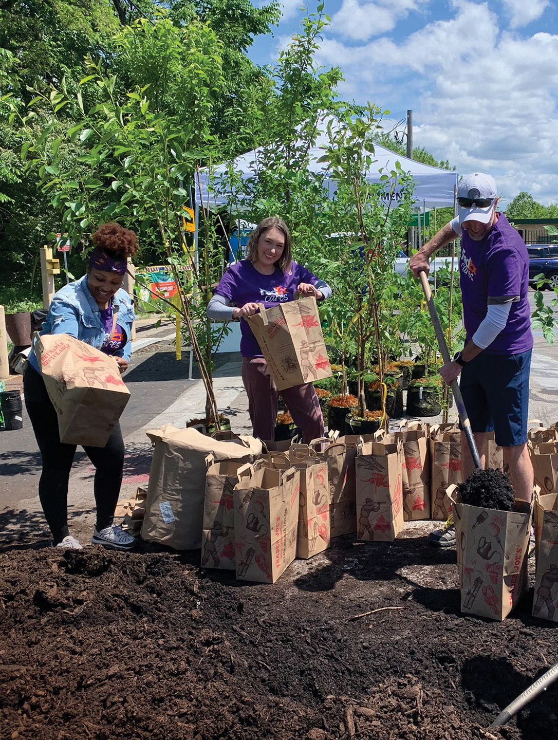 “In one year, we planted 80 trees. That’s crazy! What an amazing gift to give to Philadelphia and for the future Philadelphia, to my daughter, who’s now seven. We started this when she was one,” Lowther says. “She comes out to these volunteer days and learns the value of service, the value of keeping an urban area clean.”