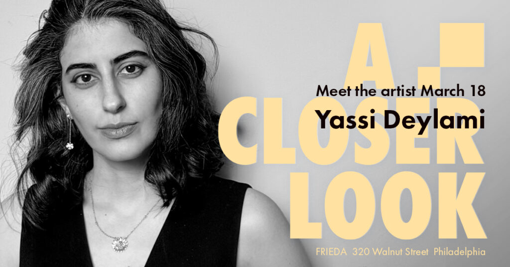 MoreFRIEDAcommunity is proud to announce the upcoming show A Closer Look by Yassi Deylami. The exhibition will be on view from Friday, March 6 – Sunday, April 19, Monday – Sunday: 9:00 am – 3:00 pm. Join us for the opening cocktail reception to meet the artist on First Friday, March 6, an in-depth artist