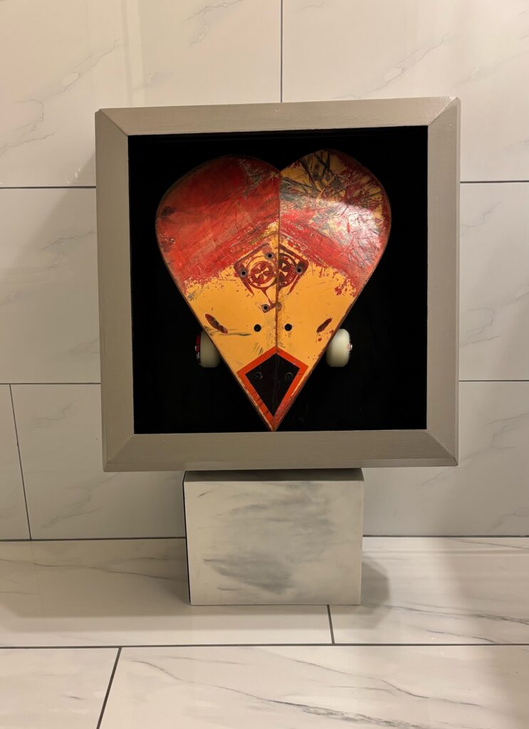 I interview Jack Larimore from an unfinished bench in his studio. Reclaimed wood timbers lay on an angle—dominos mid-fall—braced by a small round ball. The top is sanded, but still rustic. As he speaks, I can’t help but run my finger along the grain of the
