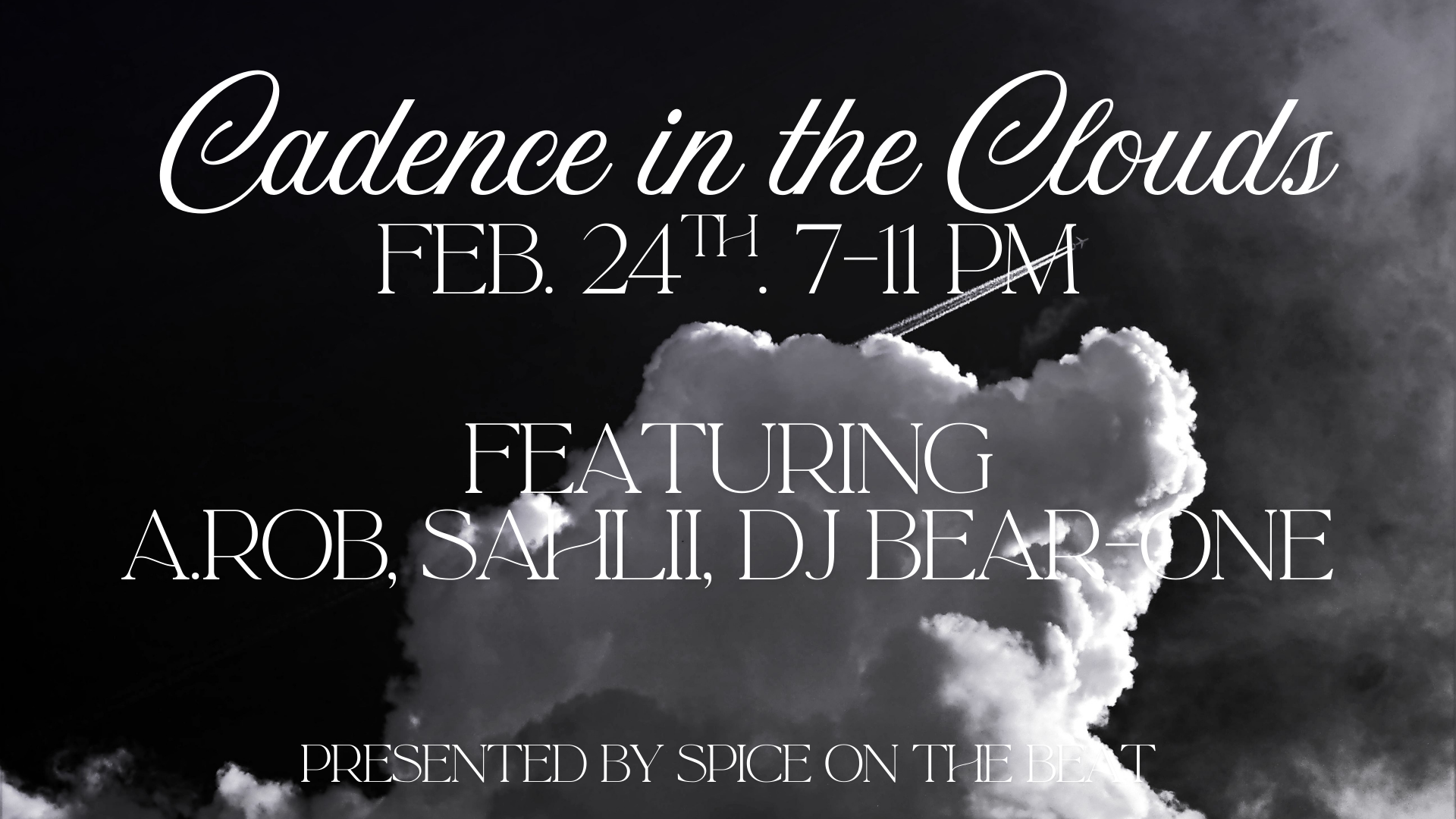 Cadence in the Clouds is an industry night that celebrates the dreamers in Philadelphia; the artists, the creatives, the entrepreneurs, and the supporters of the arts. It is meant to show Philly artists that they don’t need to move out of the city to have a thriving career. Philly is a city rich in history, and they should be a part of it given the necessary resources and connections. We aim to create the industry night that puts all of those people in one room, while using all local Philadelphia businesses and artists, to make a night where people connect and collaborate through the language of music. While patrons get to enjoy a live concert featuring music from DJ Bear One, A.Rob, and Sahlii, their ticket also comes with artist bios, raffles for a studio session and a photography/music video shoot, live art, complimentary snacks and sweets, and so much more.