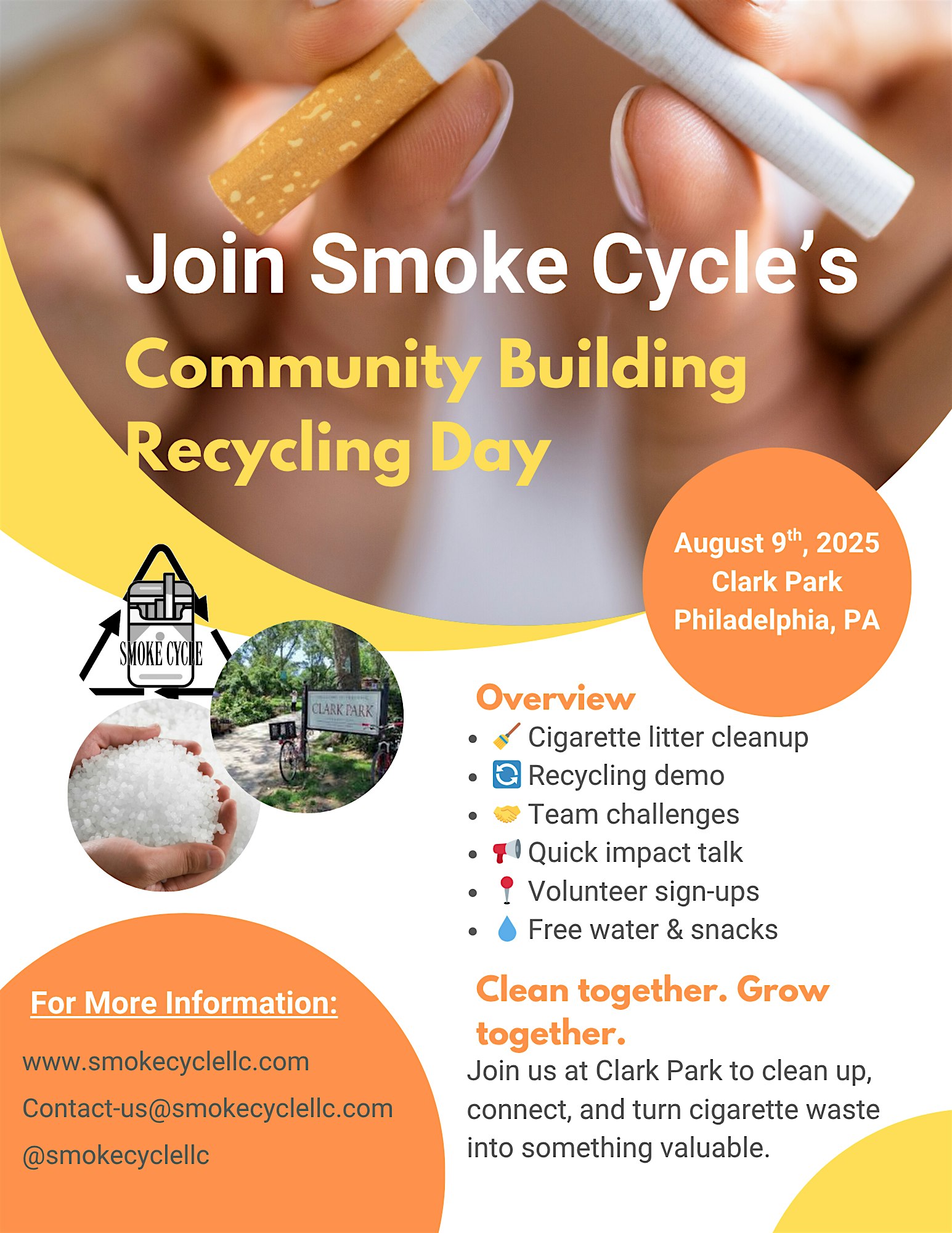 Get ready to clean up, connect, and create change. Smoke Cycle LLC invites you to our Team-Building Recycling Day at Clark Park!