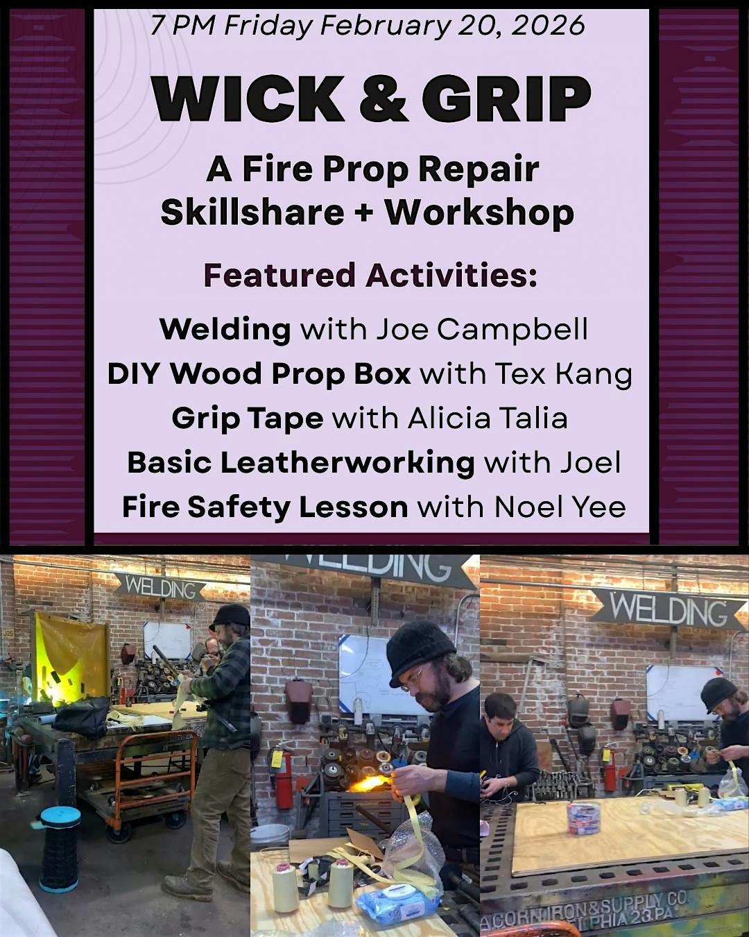 Wick & Grip, Prop Repair Workshop + Fire Jam at Metal Inc Studio