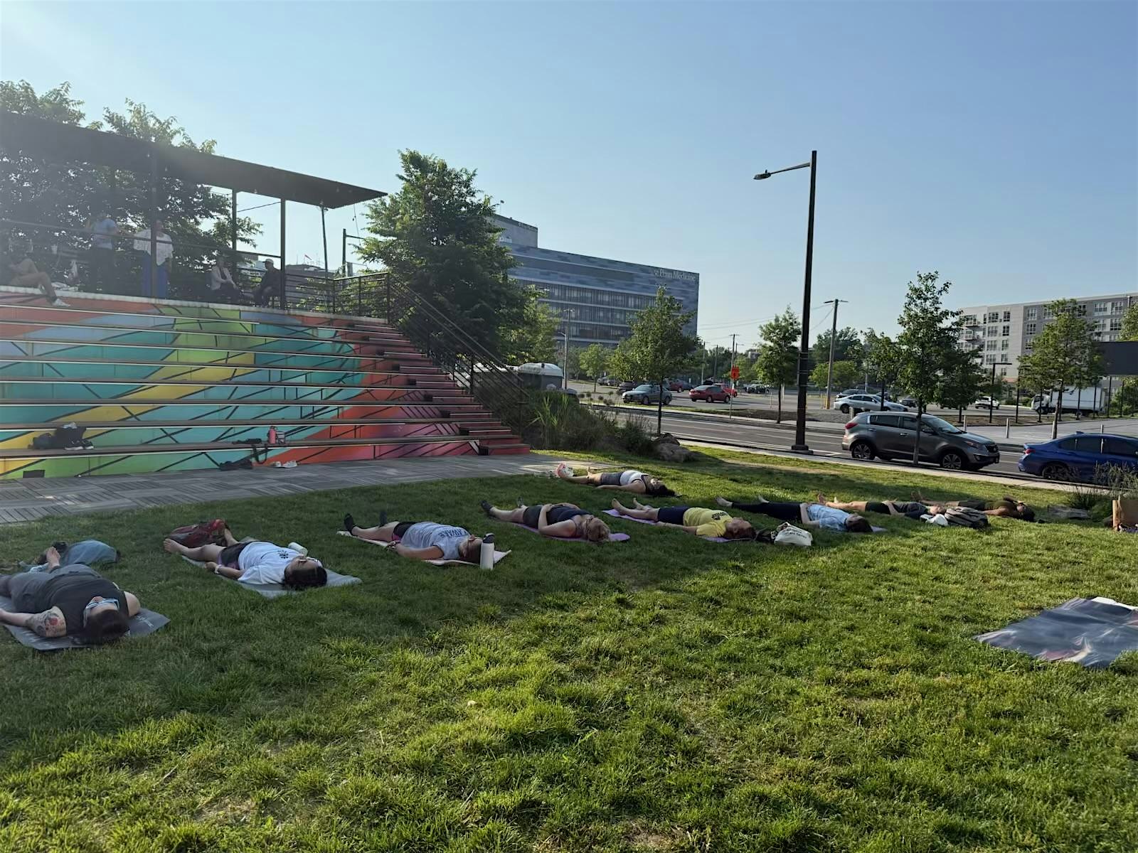 Join instructor Alicia Atkinson every Tuesday for an outdoor yoga session! This class is open and free to all, and is accessible to all levels of yoga practice.