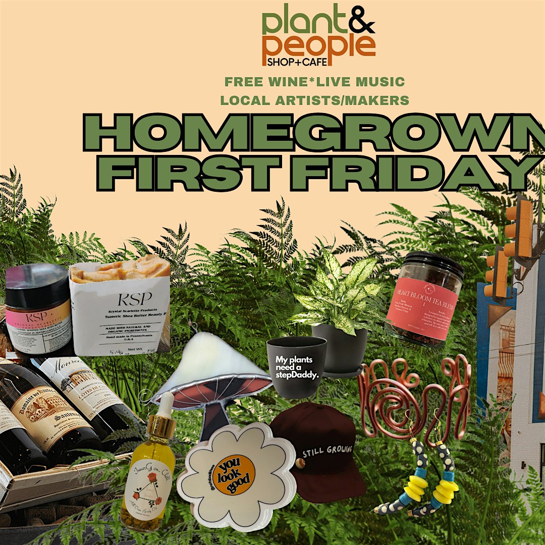Celebrate community, creativity, and culture at First Friday Homegrown a recurring series dedicated to spotlighting Philly’s very own!We created the Philly Homegrown section to uplift Philly’s creative community providing a platform for local talent to shine and a space for neighbors to discover, support, and celebrate the artistry rooted in our city. Each month, we open our doors for an evening of local love: shop unique, handcrafted goods, meet the makers, and connect with your neighbors. Enjoy complimentary wine, light refreshments, and a vibrant atmosphere where art, plants, and people come together.
