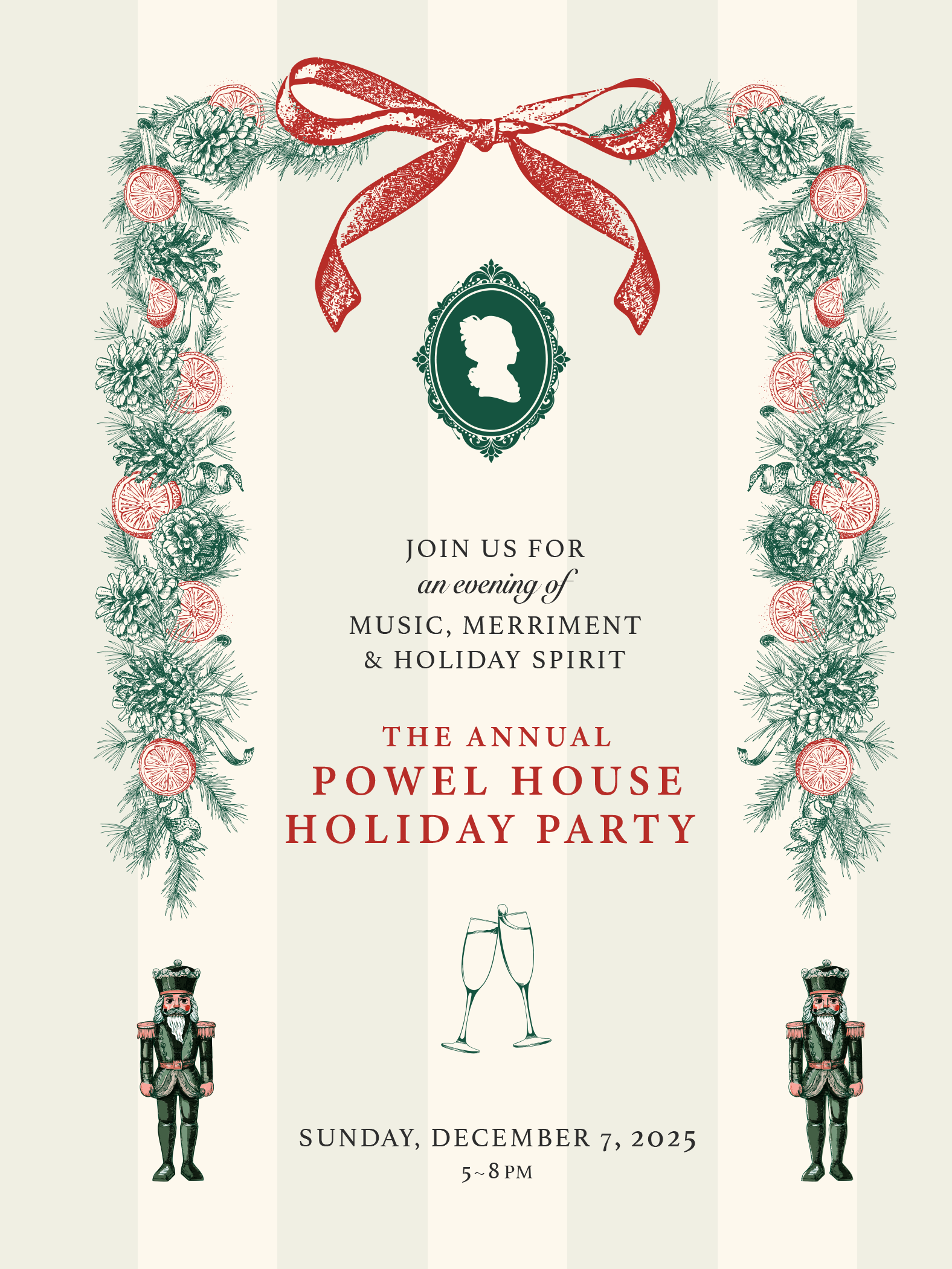 Join the Powel House Committee to celebrate the season on Sunday, December 7th with: Festive Holiday Buffet Seasonal favorites and delicious hors d'oeuvres Signature Holiday Cocktails Wine, beer, and festive beverages Live Caroling Performance By the renowned Orpheus Club of Philadelphia Silent Auction Unique gifts, experiences, and holiday treasures Browse, bid, and win throughout the evening Come mingle with friends and neighbors while enjoying beautiful holiday music, delicious food, and the excitement of our silent auction. The evening promises warmth, wonderful company, and the perfect start to your holiday season. Festive attire encouraged