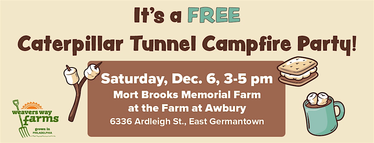 Get ready to cozy up by the campfire, roast some marshmallows, and enjoy a night of fun at Weavers Way Farm - it's gonna be lit!Join the Weavers Way Farm Team at our Mort Brooks Memorial Farm site for some fire-side sharing about how we are using our new “caterpillar tunnel” hoop houses to extend our growing season and grow food through the winter. Camp fire, smores and hot-chocolate will be provided. This event is FREE. Please consider bringing your own chair and plenty of warm layers. ALL ARE WELCOME!WHERE? Mort Brooks Memorial Farm at The Farm At Awbury, 6336