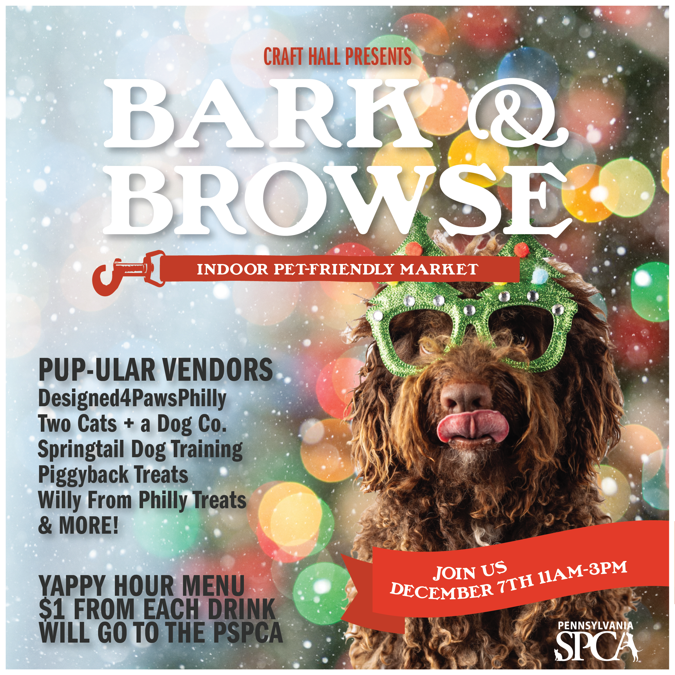 Holiday Bark & Browse at Craft Hall Grab your furry friends and join us at Craft Hall's Holiday Bark & Browse, a festive market for dogs and the people who love them, in support of the Pennsylvania Society for the Prevention of Cruelty to Animals (PSPCA). Held monthly at Craft Hall—Philadelphia's unique hybrid dog park and beer garden—this puppy paw-ty brings together pet lovers and local artisans for a tail-wagging good time. Located in Philadelphia's vibrant waterside neighborhood, Craft Hall serves as a community gathering place where residents and their dogs can socialize, shop, and celebrate. Featured Vendors: This collection