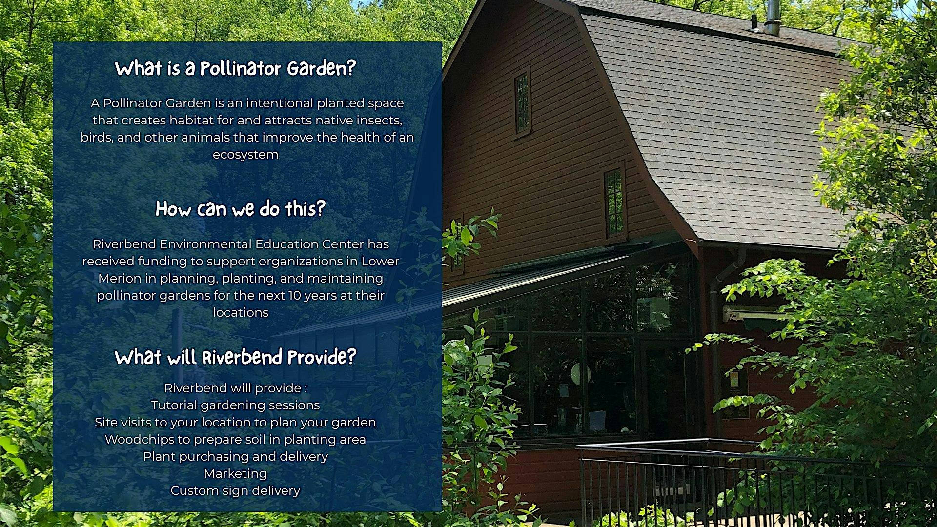 Learn about hosting a garden that will create welcoming habitat for native bees, butterflies, birds, and other pollinators.Join us to learn about what it takes to plant and maintain a pollinator garden at your home or community center. Michelle Detwiler of Wild About Native Plants will present on the benefits of planting native for the ecosystem and what goes into designing a plan for a native garden. Snack on a slice of pizza while Michelle guides us through a demonstration of the process of preparing soil for planting.Attending this interest meeting makes you eligible to receive up to $350 of
