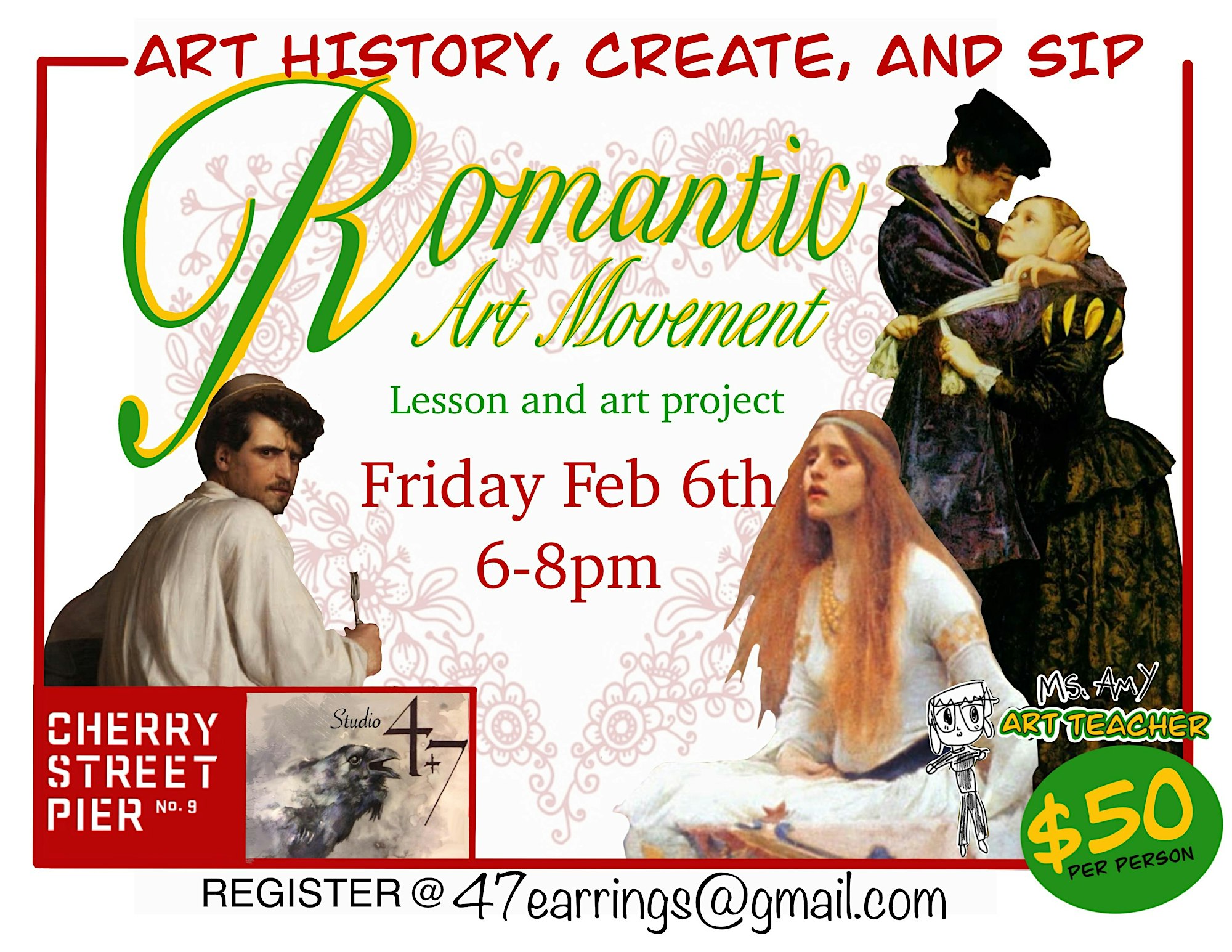 Come out and learn about the characteristics and cause for the Romantic Art Movement. Afterwards, make a mixed media collage about emotions.Welcome to The Romantic art movement. Create, and Sip event! Join us at Cherry Street Pier on February 7, 2026 at 6:00 PM for an evening filled with creativity and relaxation.Unleash your inner artist as we explore the beauty of the Romantic art period together. Sip on wine, tea, or water while you immerse yourself in the world of art and creation.This event is the perfect opportunity to unwind, socialize, and tap into your artistic side. Whether you're a