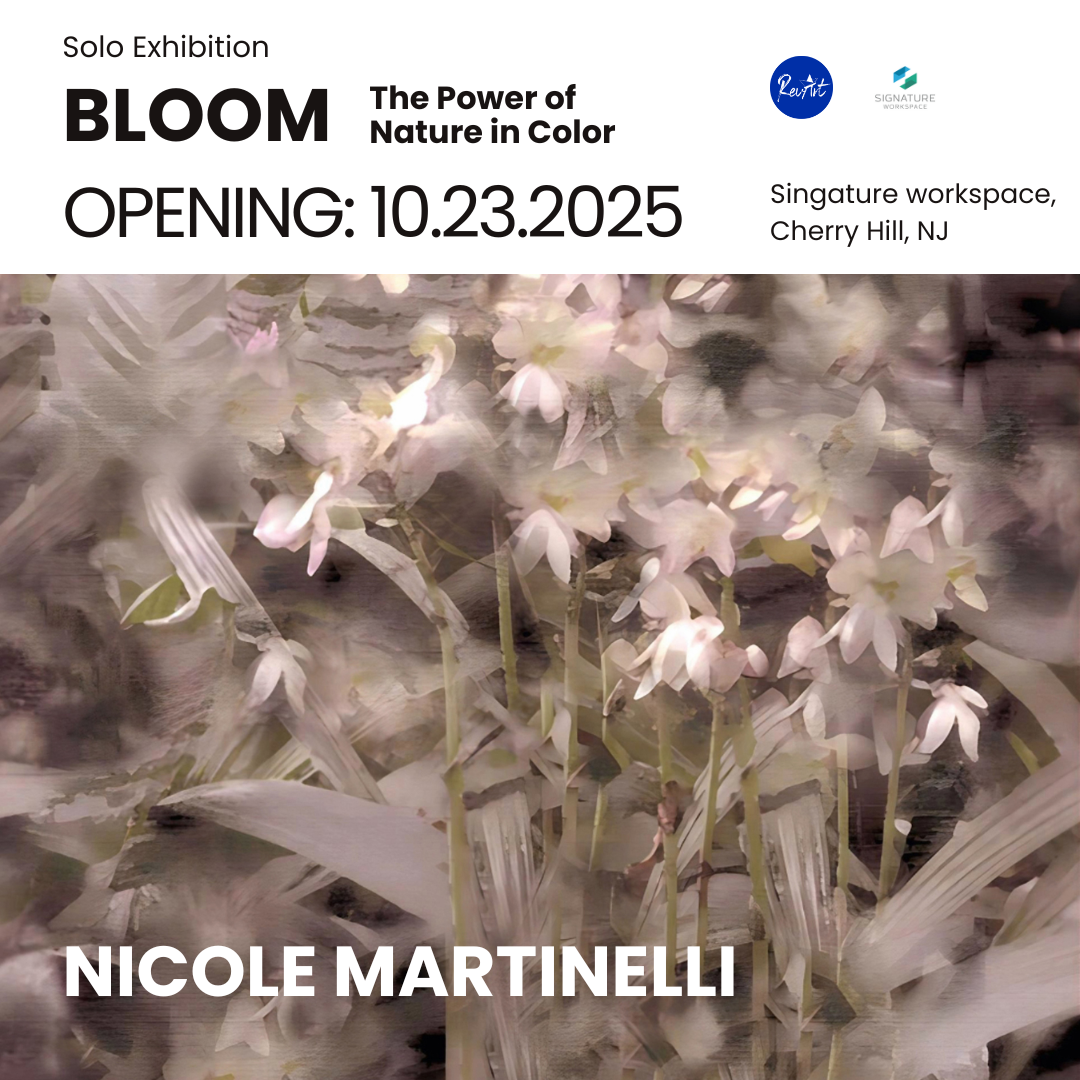 RevArt at Cherry Hill warmly invites you to celebrate the opening of Bloom: The Power of Nature in Color, a solo exhibition by multidisciplinary artist and photographer Nicole Martinelli. ​Nicole Martinelli is an Internationally Acclaimed Artist featured in prominent galleries throughout North America and Europe. Nicole transitioned from oil painting to photography, then created her new innovative medium, hand-painted e-paintings. The artist has showcased her work in prestigious galleries across the US and Europe from Gstaad, Switzerland to Lecce, and Rome Italy! ​The Artist Nicole Martinelli will share her personal life story, the challenges she overcame, and her achievements in