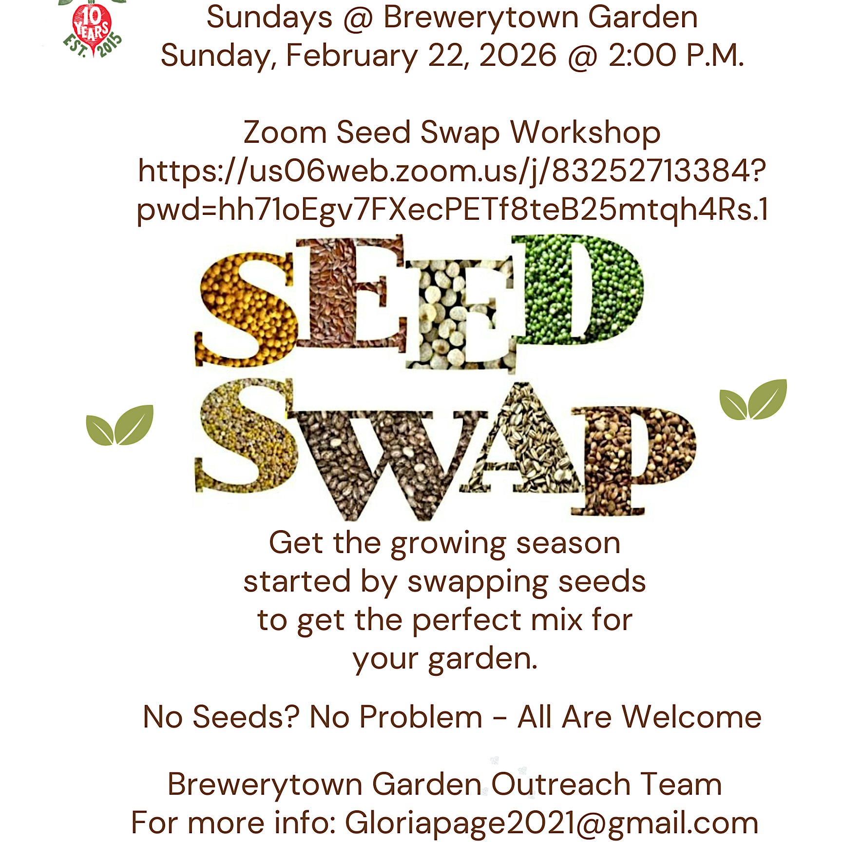 Get the growing season started by swapping seeds to get the perfect mix for your garden.Welcome plant lovers! 🌱 Join us for the Zoom Seed Swap on February 22, 2026 at 2:00 PM (Eastern Time). It's a great opportunity to share and exchange seeds with fellow gardening enthusiasts from the comfort of your own home.https://us06web.zoom.us/j/83252713384?pwd=hh71oEgv7FXecPETf8teB25mtqh4Rs.1