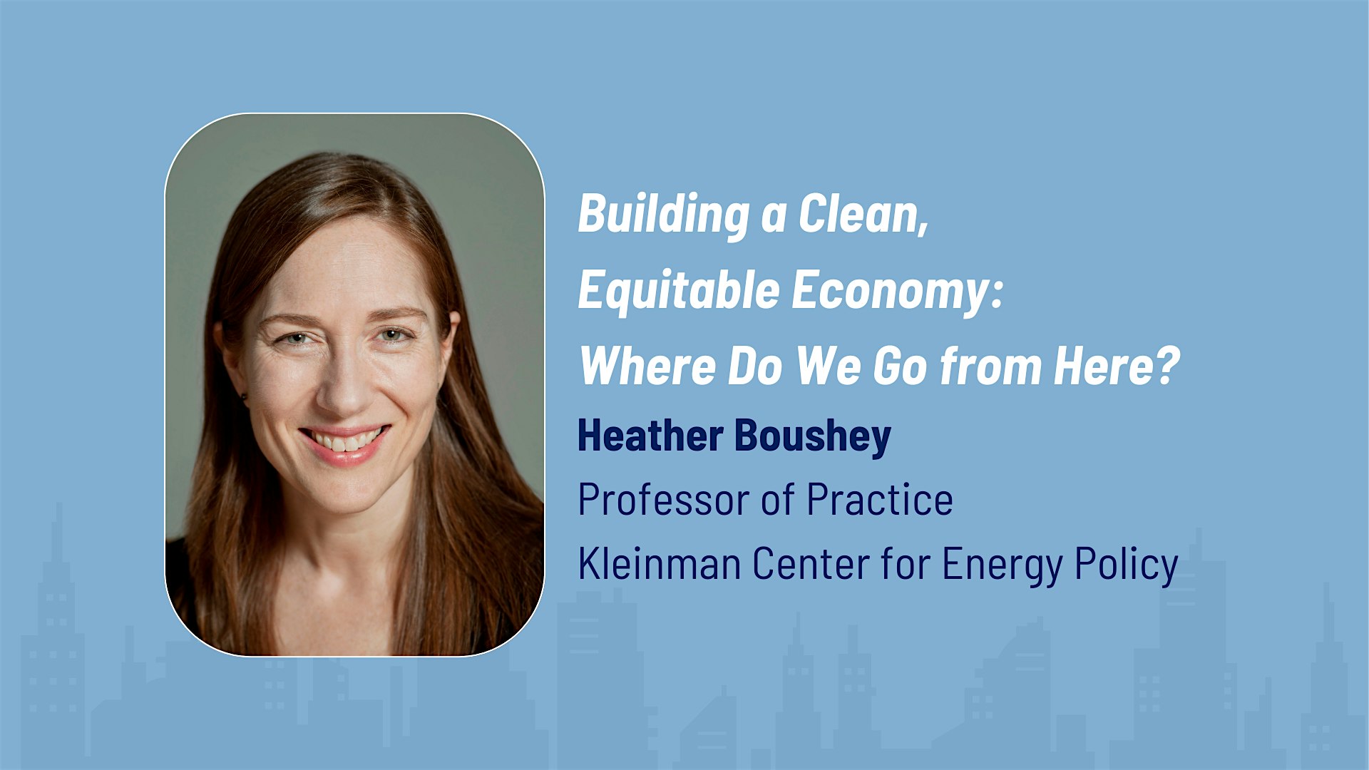 Join Heather Boushey to learn about how the United States can embrace the clean energy transition without leaving communities behind.Penn Climate, the Kleinman Center for Energy Policy, and the Penn Center for Science, Sustainability, and the Media, welcome Heather Boushey, Professor of Practice at the Kleinman Center for Energy Policy, for a conversation during Earth Week.One of our nation’s most pressing economic challenges is embracing decarbonization as a strategic opportunity for shared growth and security. There is a need to rapidly transition from a carbon-intensive economy, to adapt to the real-time physical damages incurred from a changing climate, to bolster